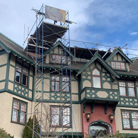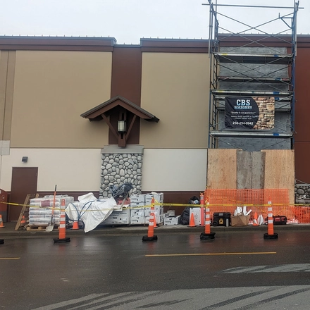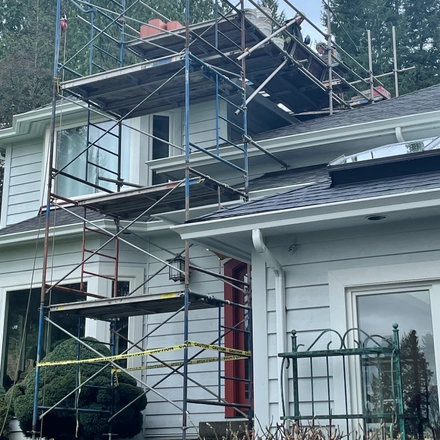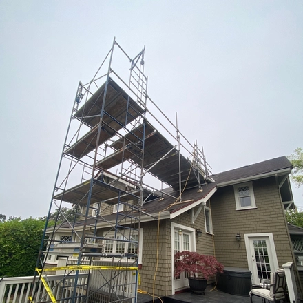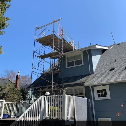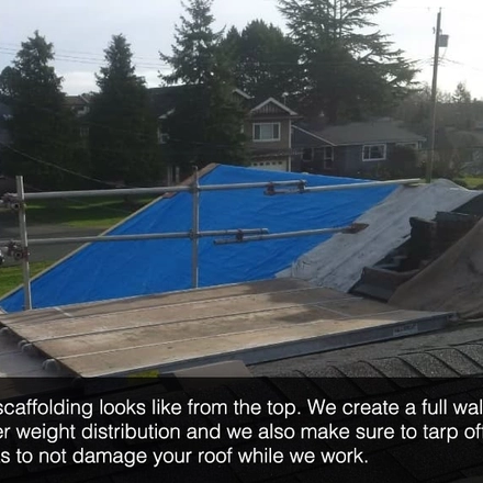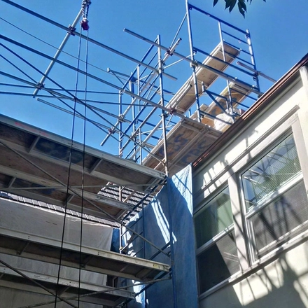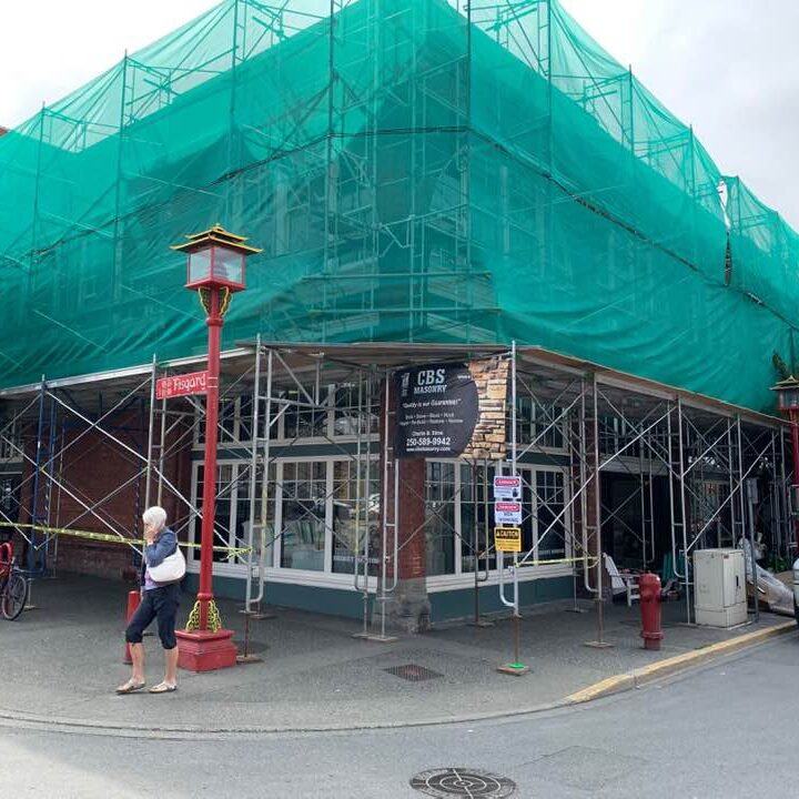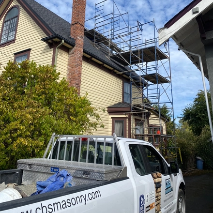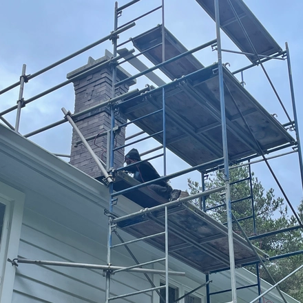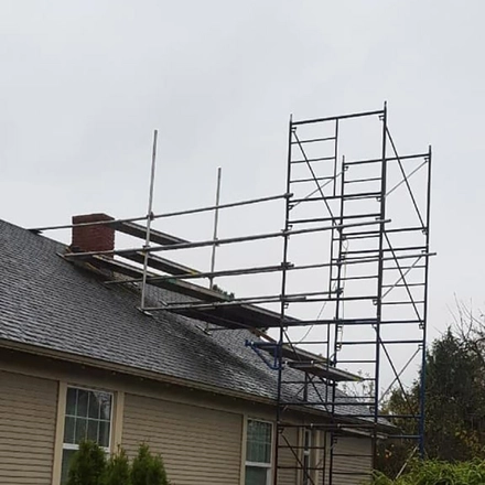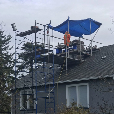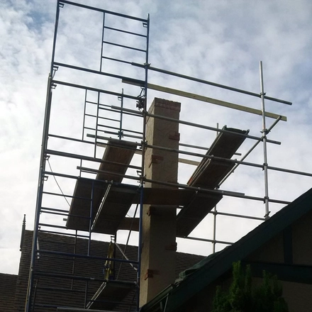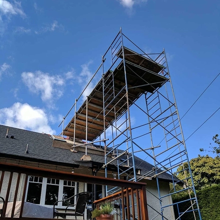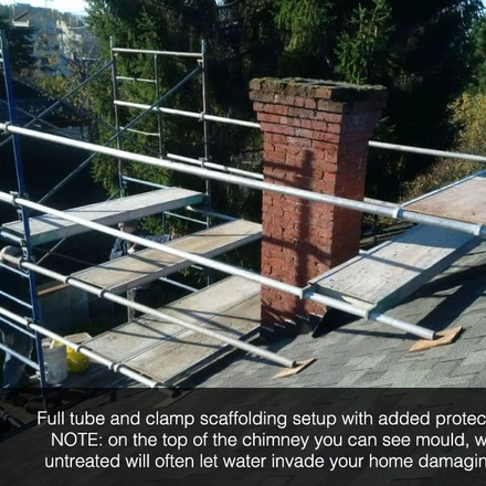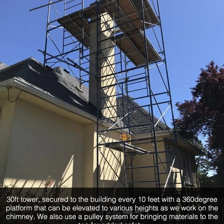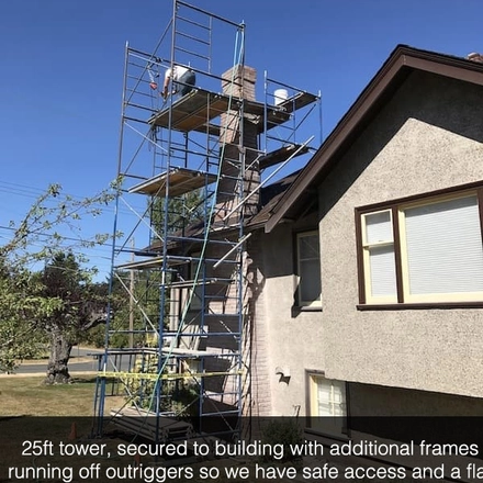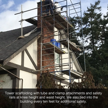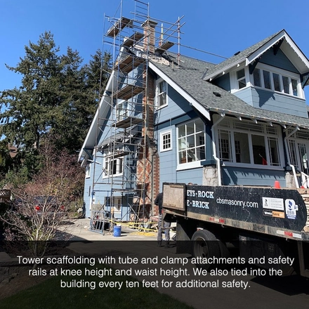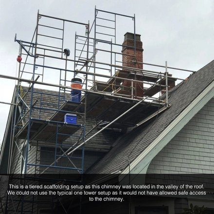 Whenever we are working on chimney stacks, buildings or other large structures we always set up scaffolding that meets or exceeds WCB Health & Safety standards.